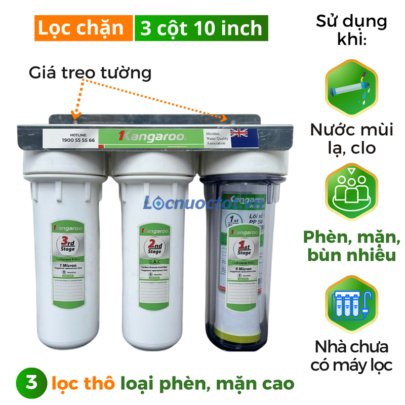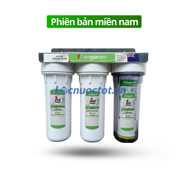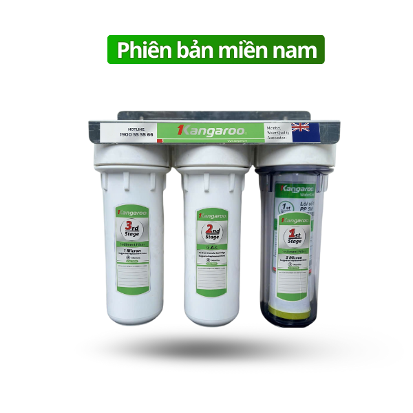 Bộ cốc lọc đầu nguồn Kangaroo với hệ thống 3 cốc lọc làm sạch nước đầu nguồn hiệu quả trước khi đưa vào máy lọc nước RO
