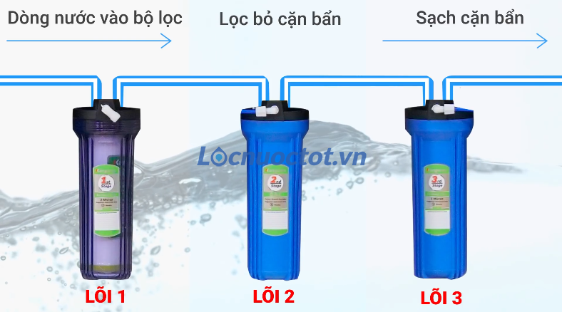 Bộ lọc sẽ đóng vai trò tiền xử lý nước để chuẩn bị đi qua bộ lọc tinh (RO) và qua các lõi, giúp làm sạch nước hiệu quả, an toàn khi sử dụng.