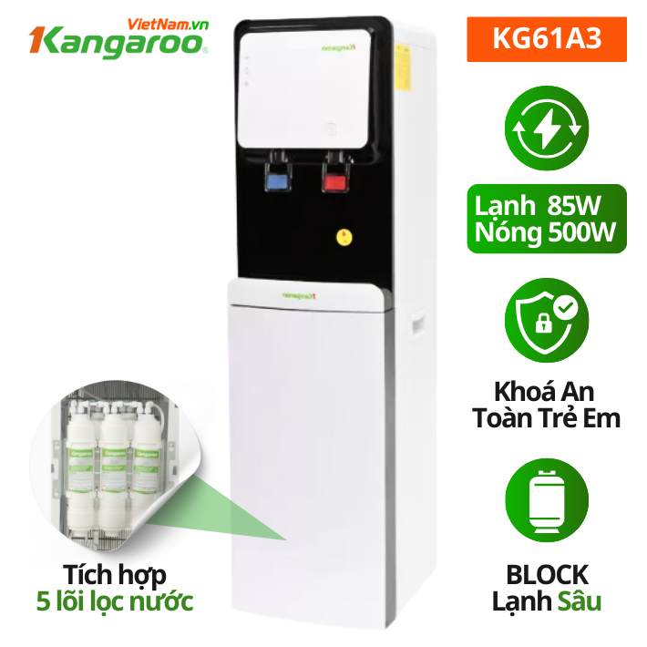 Cây lọc nước nóng lạnh RO Kangaroo KG61A3 kiểu dáng đơn giản, hiện đại, nhỏ gọn, thích hợp cho mọi không gian là một lựa chọn hàng đầu cho gia đình, văn phòng, bệnh viện.