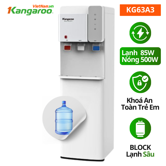 Cây nước nóng lạnh Kangaroo KG63A3 nóng cao, lạnh sâu, an toàn với khóa vòi nóng và tự ngăt khi quá nhiệt... giúp bạn và gia đình lấy được nguồn nước đúng ý với chất lượng tốt nhất.