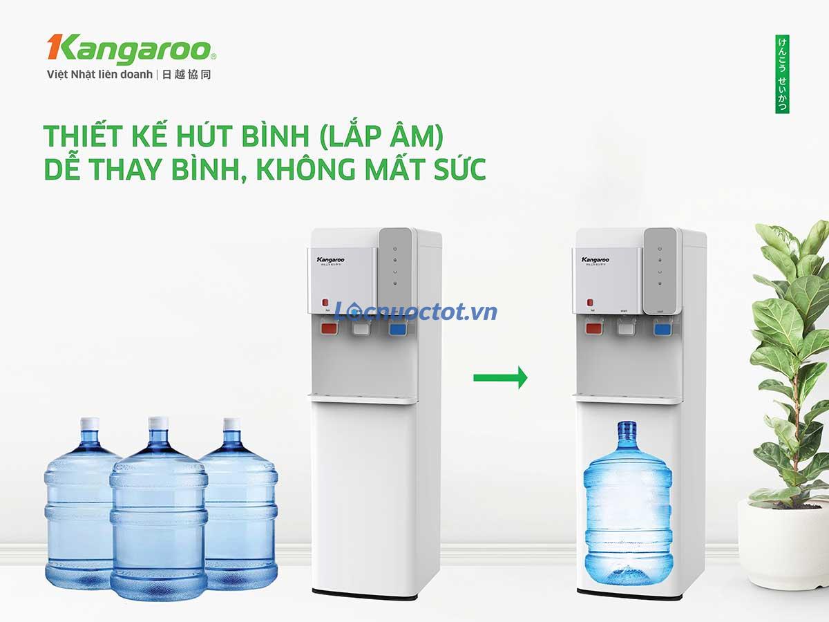 Hơn nữa, thiết kế âm bình cũng khiến việc thay thế bình nước dễ dàng hơn. Khách hàng nữ hoặc người lớn tuổi hoàn toàn có thể từ từ đẩy bình vào cây nước chứ không cần phải mang vách nặng nhọc.