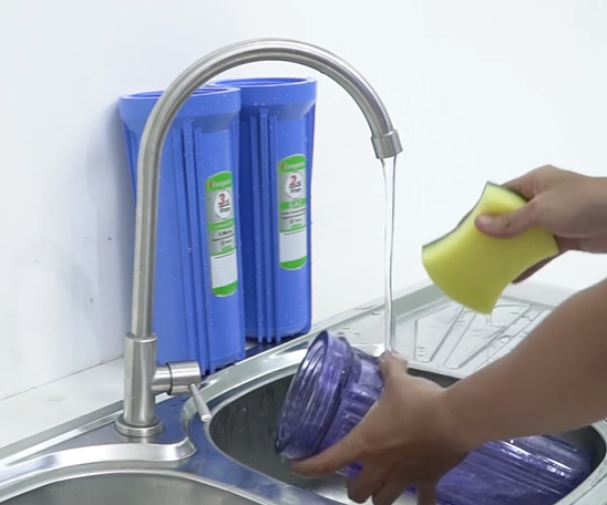 | Bước 5 | - Thay lõi mới (nhớ bóc lớp nilon ở lõi lọc ra) rồi lắp lại , + Thay lõi 1,2 trước (để lõi 3 ở ngoài) - rồi bật máy, xả đi 2,3 ca nước. + Cuối cùng thay lõi 3 vào. |