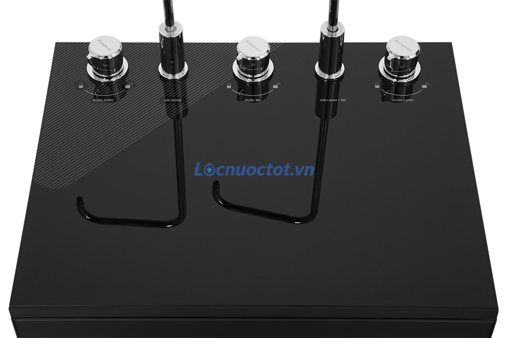 Điều khiển cơ – 3 núm xoay: Thiết kế vòi lấy nước tinh tế từng chi tiết với van điều khiển cơ dễ sử dụng, bền chắc. 2 vòi cùng 3 van xoay cơ độc lập cho 3 chế độ nước nóng – lạnh – RO.