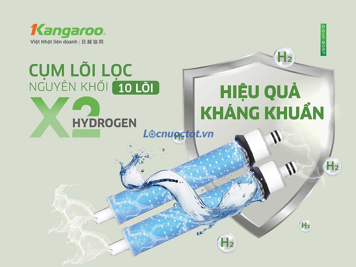 Duy nhất Kangaroo có bằng sáng chế độc quyền thiết bị lọc nước Hydrogen. Nước Hydrogen tươi bổ sung vi khoáng tự nhiên và chất điện giải có lợi, giúp tăng cường miễn dịch và nước có vị ngon tự nhiên. Đồng thời hoạt động như một chất chống oxy giúp loại bỏ gốc tự do có hại gây lão hóa, các bệnh dạ dày…
