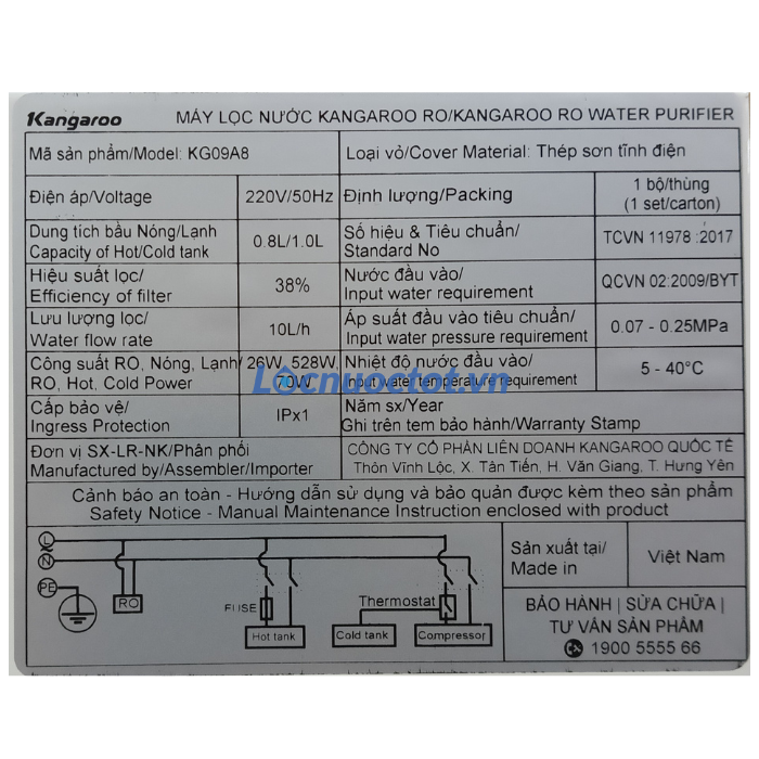 Máy lọc nước nóng lạnh Kangaroo KG09A8 là sự lựa chọn hoàn hảo cho mọi gia đình hiện đại. Với thiết kế đẹp mắt, công nghệ tiên tiến và nhiều tính năng vượt trội, KG09A8 không chỉ mang lại nguồn nước sạch mà còn góp phần nâng cao chất lượng cuộc sống.