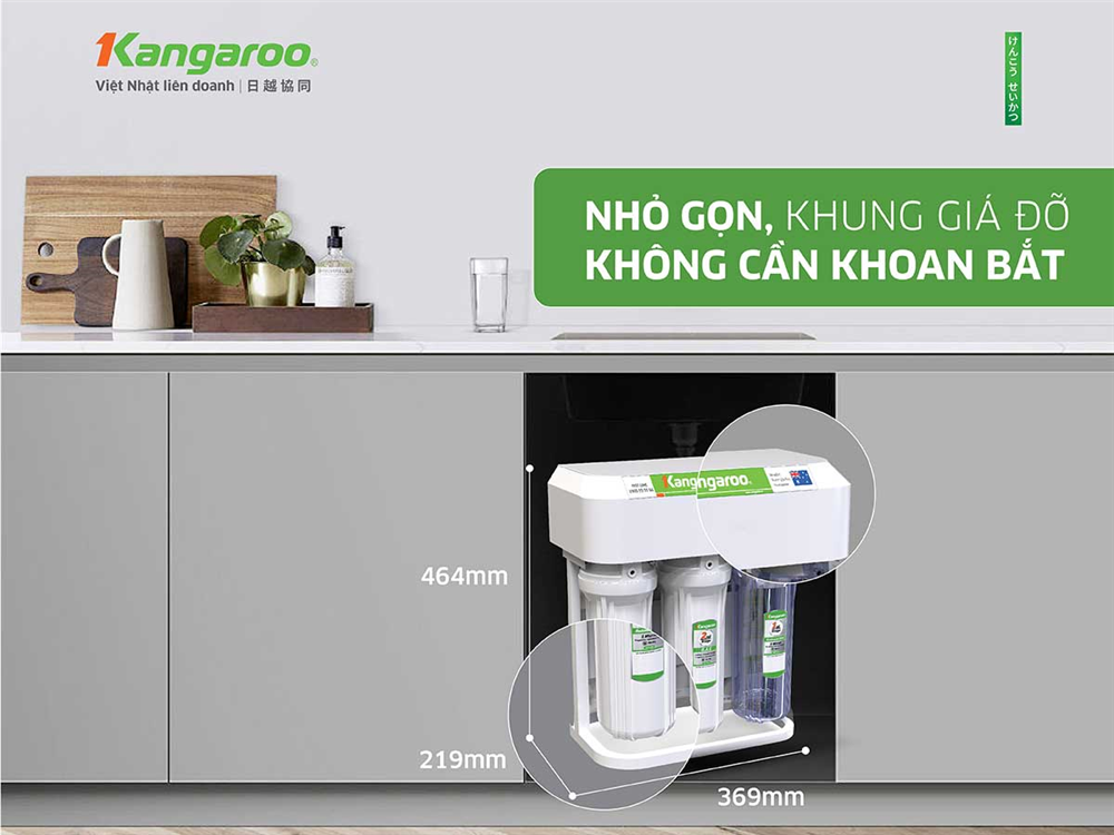 Nhỏ gọn và chắc chắn, máy lọc nước 10 lõi Hydrogen Kangaroo KGHP10K2 khác biệt với các dòng máy lọc nước để gầm thông thường là có khung giá đỡ bền chắc, dễ lắp đặt dưới bồn rửa, giúp bạn đặt trực tiếp lên mặt phẳng, không cần khoan bắt vít gắn tường. Chân quỳ di động có thể đặt tại mọi nơi bạn muốn.