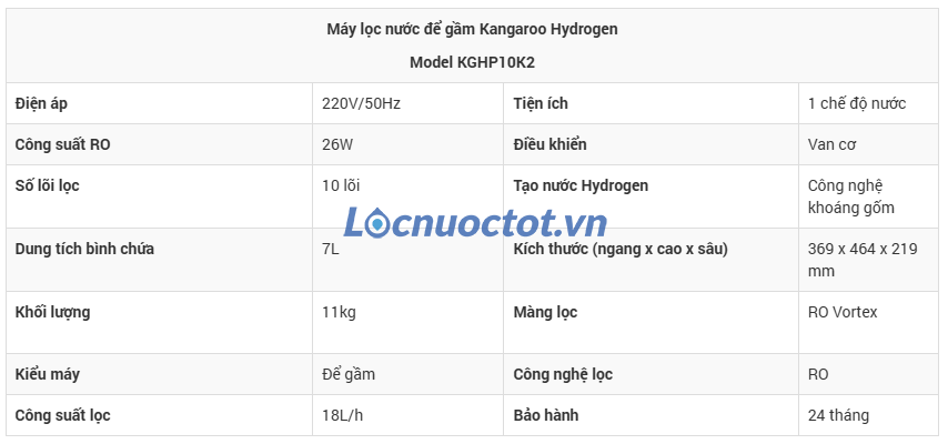 (0 Đánh giá)Máy lọc nước để gầm Kangaroo Hydrogen Model KGHP10K2 | |||
