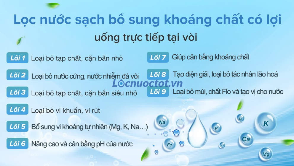 | Số lõi lọc | 9 lõi | Tạo nước Hydrogen | Không |