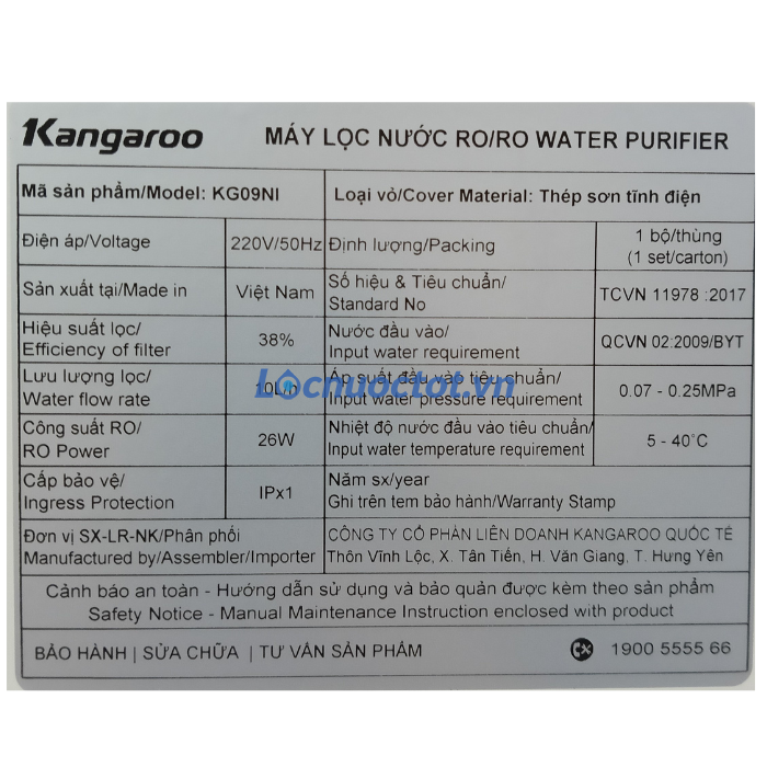 (0 Đánh giá)Máy lọc nước RO Kangaroo Infinity Model KG09NI | |||