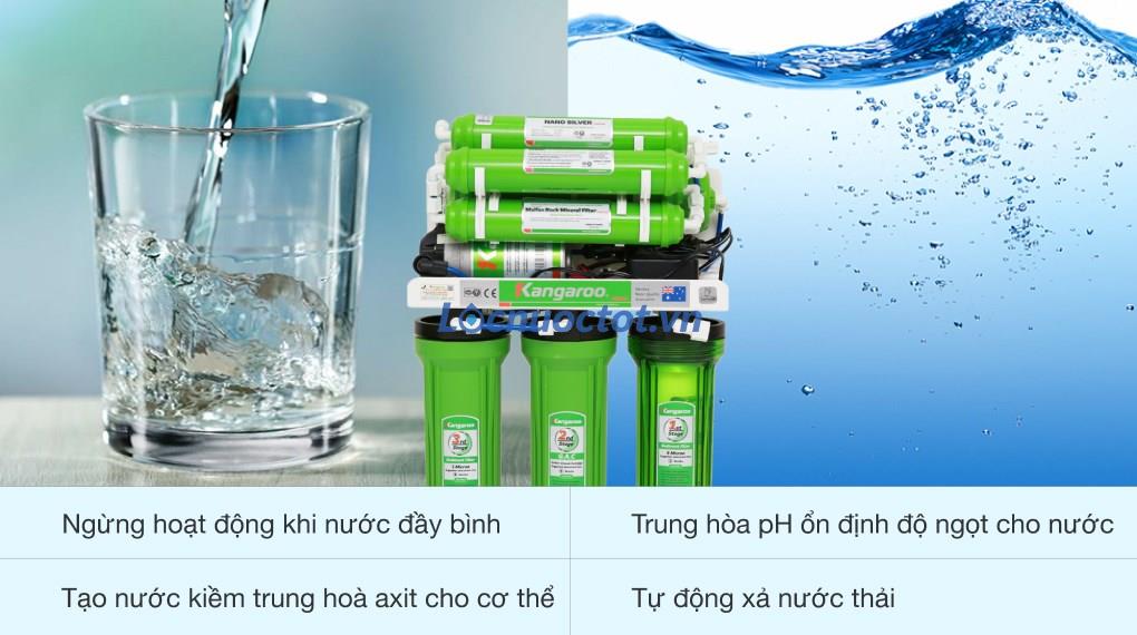 | Tiện ích | - Cột lọc NANO bạc có thể tiêu diệt tới 99.99% vi khuẩn - Nước chứa OMEGA chống mỡ máu. - Tự động xả nước thải - Trung hòa độ pH ổn định độ ngọt cho nước - Ngừng hoạt động khi nước đầy bình |