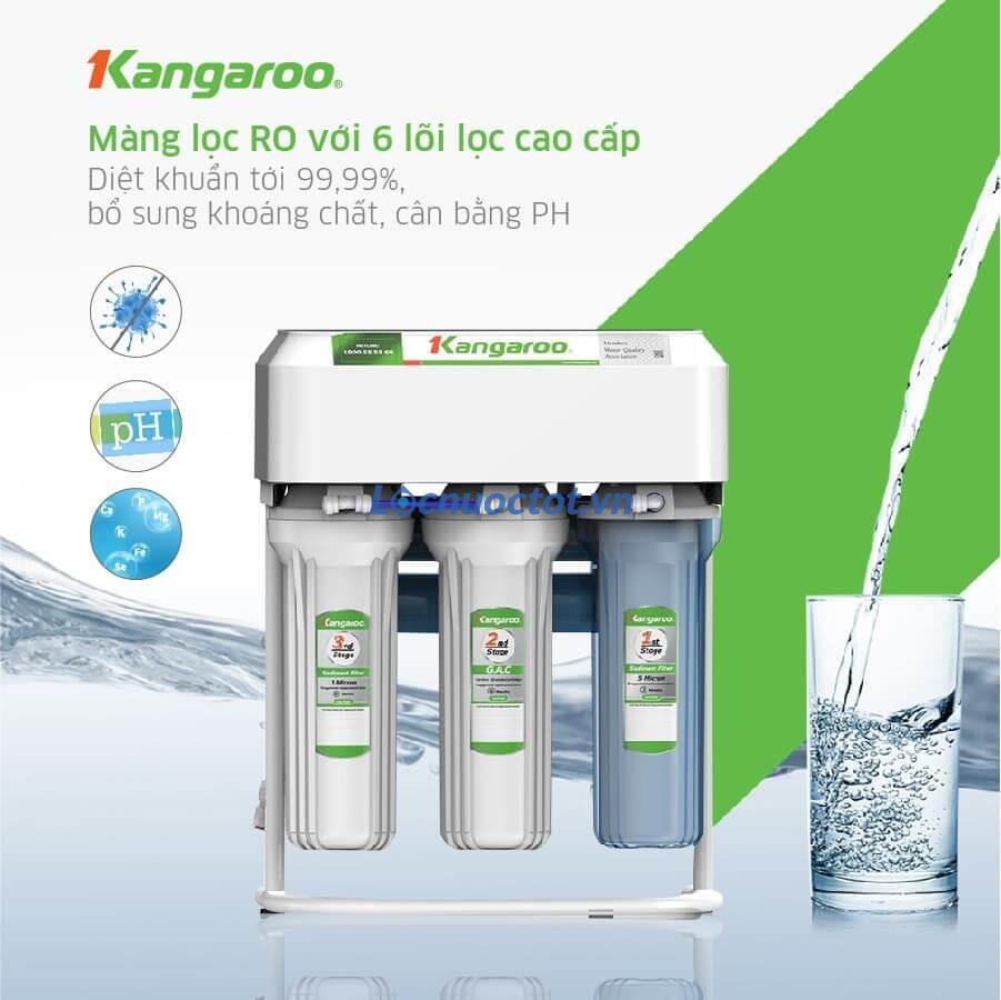Máy lọc nước RO Kangaroo KGRP68EC có 6 cấp lọc mạnh mẽ, diệt khuẩn đến 99,99% và cân bằng pH cho nước mang đến nguồn nước sạch khỏe cho cả gia đình:
