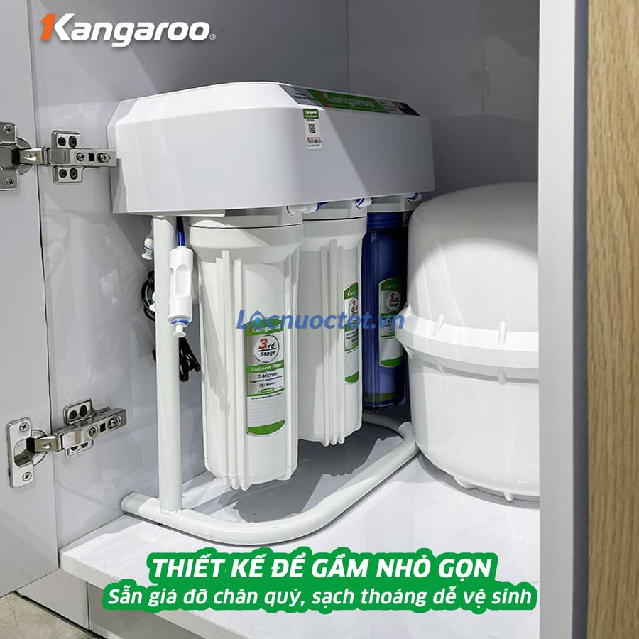 Máy lọc nước chân quỳ Kangaroo KGRP68EC có chiều sâu là 20.2cm chỉ bằng một gang tay, chiều cao 45.4cm và chiều dài 37.3cm, dễ dàng lắp đặt tại mọi nơi dưới gầm tủ của gia đình, nhằm tối ưu diện tích cho căn nhà.