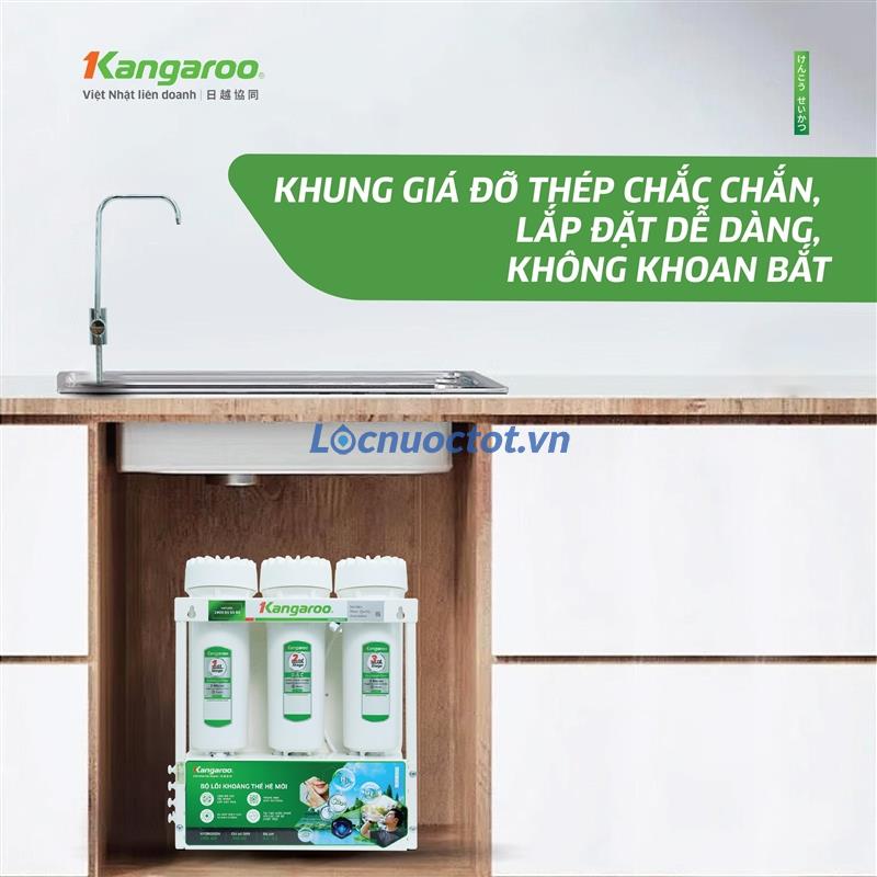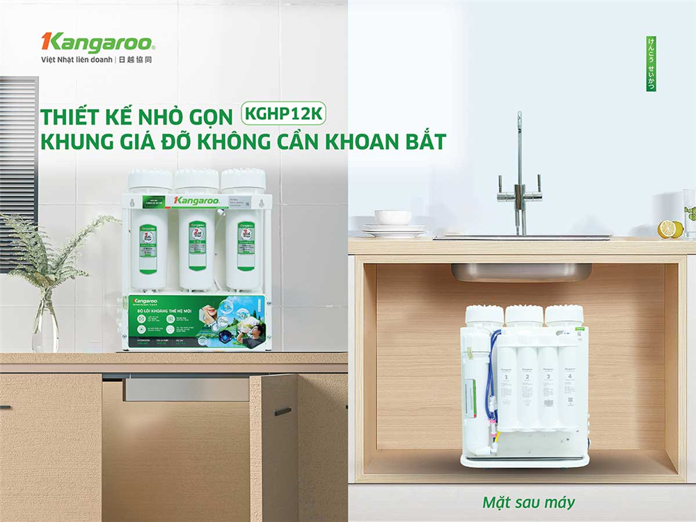 Nhỏ gọn và sạch sẽ, máy lọc nước 12 lõi Kangaroo KGHP12K khác biệt với các dòng máy lọc nước để gầm thông thường là có khung giá đỡ thép bền chắc, dễ lắp đặt dưới bồn rửa, giúp bạn đặt trực tiếp lên mặt phẳng, không cần khoan bắt vít gắn tường. Chân quỳ di động có thể đặt tại mọi nơi bạn muốn.